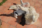 Première portée pour notre Rêve et première pour nous avec 1 seul bébé ! (le véto a bien cherché mais qu'un seul!) et trop bien une fille !! donc soit elle partait chez puce et gilles soit elle restait avec nous trop trop belle .... née à 720 g ...14 kg à 2 mois et 15kg6 le 8 juin... sera tres costaud car pas grasse mais de l'os du muscle... maman Rêve tres décontracté ,