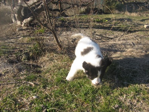 nous marchons, aboyons, jouons, le tétou de maman est toujours le bienvenu et bientôt notre première poupou qui est toujours source de photos sympas.
