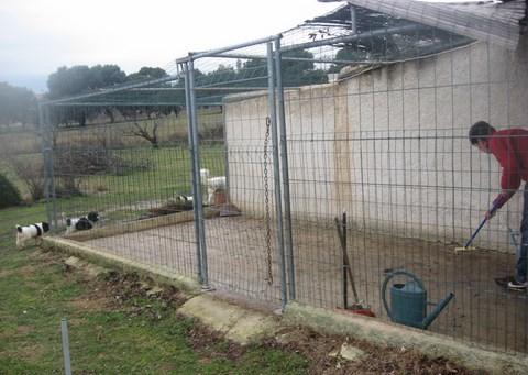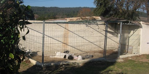 et voilà nous sommes sortis de la maison où nous étions dans un petit parc pour intégrer un grand boxe fermé avec une grande cour devant que pour nous.