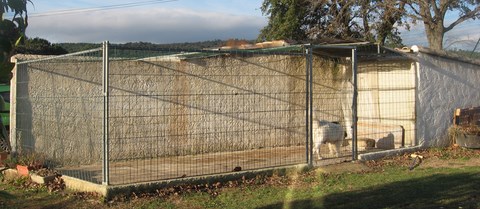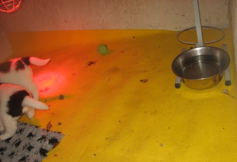 Bien sur dans le boxe la lampe chauffante pour nous donner de la lumière et de la chaleur. Nous sommes libre est pouvons sortir et rentrer comme nous voulons ! Au départ notre porte était fermé la nuit mais maman a tout démonté pour sortir et après elle ne pouvait plus rentrer donc la porte est ouverte enfin il y a juste un tout petit passage vers le bas pour permettre à maman et à nous aussi de sortir. Le froid et surtout le mistral est fermé dehors, de toutes façons là on nous sommes c'est bien à l'abri du vent et plein soleil.